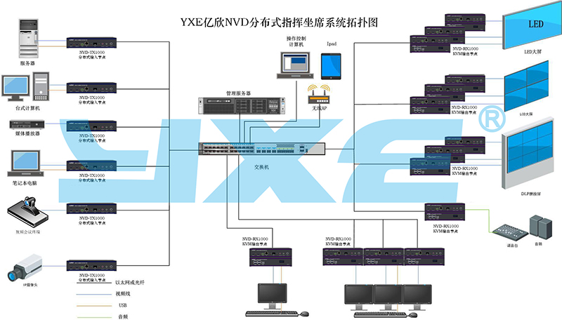 YXE億欣NVD分布式指揮坐席系統(tǒng)拓?fù)鋱D