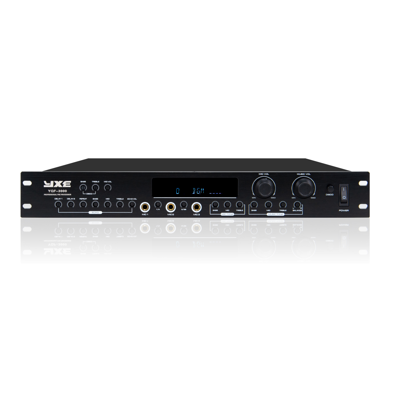 音樂與人聲獨(dú)立控制,方便操作,并使人聲與音樂混合自然; 2. 內(nèi)置數(shù)字雙混響效果器,混響強(qiáng)度、延時(shí)時(shí)長及混響次數(shù)獨(dú)立調(diào)節(jié); 3. 效果器具備3段均衡,音色調(diào)整精度更高; 4. 兩組信號輸入,可方便的連接DVD、電腦等設(shè)備; 5. 音源自動識別切換,自動判斷音源輸入通道并進(jìn)行切換; 6. 5個(gè)話筒輸入通道,配有話筒電平調(diào)節(jié)、混響時(shí)間及混響強(qiáng)度調(diào)節(jié); 7. 內(nèi)置電子分頻系統(tǒng),滿足超低頻揚(yáng)聲器連接功能需求; 8. 音源輸入具備3段均衡處理,高中低三段頻率可自由調(diào)整; 9. 麥克風(fēng)輸入具備3段均衡處理,高中低三段頻率可自由調(diào)整; 10. 帶中置、超重低音和雙立體聲共六通道輸出; 11. 主聲道、中置、環(huán)繞及超低音通道電平獨(dú)立調(diào)節(jié); 12. 中置、環(huán)繞通道人聲及音源比例獨(dú)立調(diào)節(jié); 13. 具備數(shù)字顯示屏,方便查看輸入狀態(tài)及輸出電平; |